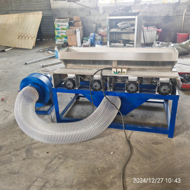 花生米干法红衣脱皮机是花生食品行业专用设备,采用差速滚动摩擦传动的工作原理。烘干后的花生米进入由摩擦砂构成的去皮区域后花生仁和花生皮自动分离,成为完整的乳白仁。广泛应用于生产油炸花生米、花生糖、可可花生、着味花生、花生糕点、花生奶及八宝粥等产品的前期脱皮处理。本产品具有性能稳定、安全可靠、生产效率高、去皮效果好,不漏料的特点。