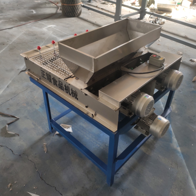 花生米干法红衣脱皮机是花生食品行业专用设备,采用差速滚动摩擦传动的工作原理。烘干后的花生米进入由摩擦砂构成的去皮区域后花生仁和花生皮自动分离,成为完整的乳白仁。广泛应用于生产油炸花生米、花生糖、可可花生、着味花生、花生糕点、花生奶及八宝粥等产品的前期脱皮处理。本产品具有性能稳定、安全可靠、生产效率高、去皮效果好,不漏料的特点。