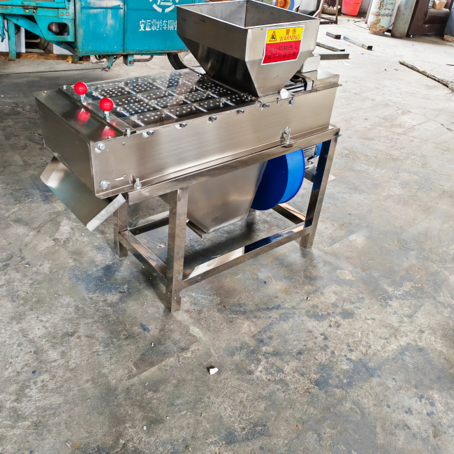 花生米干法红衣脱皮机是花生食品行业专用设备,采用差速滚动摩擦传动的工作原理。烘干后的花生米进入由摩擦砂构成的去皮区域后花生仁和花生皮自动分离,成为完整的乳白仁。广泛应用于生产油炸花生米、花生糖、可可花生、着味花生、花生糕点、花生奶及八宝粥等产品的前期脱皮处理。本产品具有性能稳定、安全可靠、生产效率高、去皮效果好,不漏料的特点。