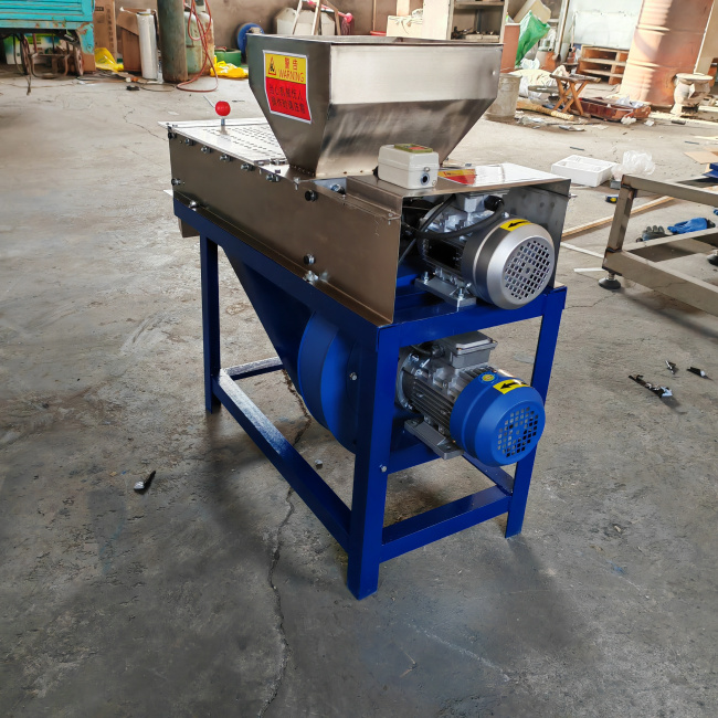 花生米干法红衣脱皮机是花生食品行业专用设备,采用差速滚动摩擦传动的工作原理。烘干后的花生米进入由摩擦砂构成的去皮区域后花生仁和花生皮自动分离,成为完整的乳白仁。广泛应用于生产油炸花生米、花生糖、可可花生、着味花生、花生糕点、花生奶及八宝粥等产品的前期脱皮处理。本产品具有性能稳定、安全可靠、生产效率高、去皮效果好,不漏料的特点。