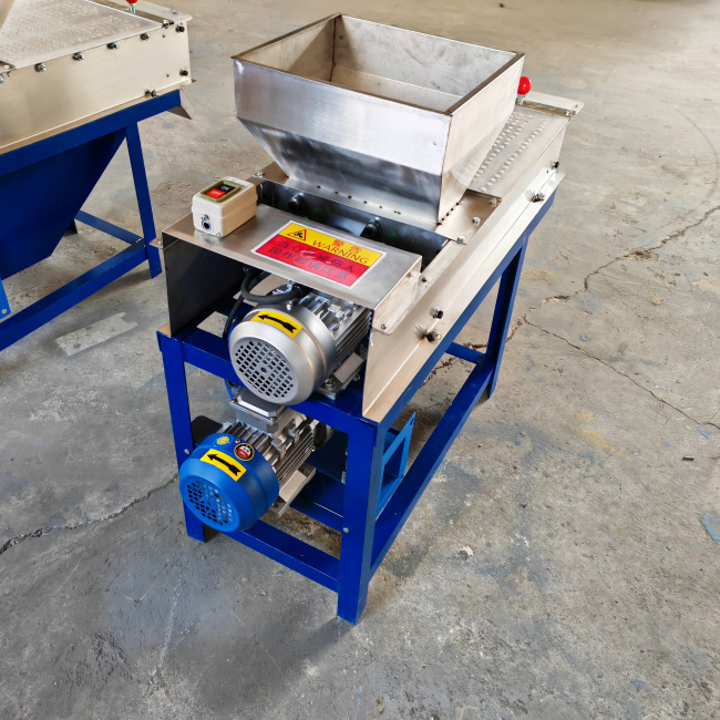 花生米干法红衣脱皮机是花生食品行业专用设备,采用差速滚动摩擦传动的工作原理。烘干后的花生米进入由摩擦砂构成的去皮区域后花生仁和花生皮自动分离,成为完整的乳白仁。广泛应用于生产油炸花生米、花生糖、可可花生、着味花生、花生糕点、花生奶及八宝粥等产品的前期脱皮处理。本产品具有性能稳定、安全可靠、生产效率高、去皮效果好,不漏料的特点。