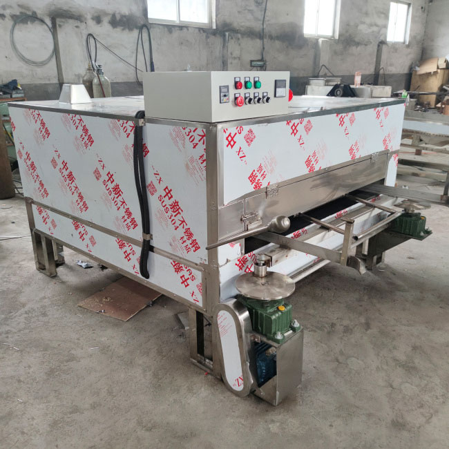 本机运用燃煤(或电加热、燃气)加热方式,利用热辐射及传导原理将半敞开的保温空间加热,以热空气为干燥介质,将热能作用到被烘烤物上。盛装物料的平摇筛,在可调速偏心凸轮的作用下摇摆晃动。