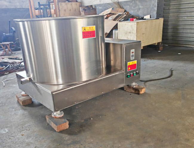 脱油机以离心力工作原理,以电动机带动脱油机内胆在高速旋转的作用下,把食品油炸过程中残留的油,通过离心作用脱净。
