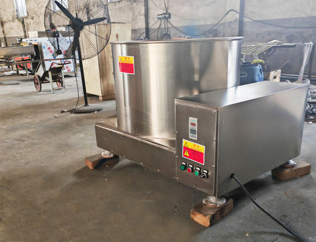 脱油机以离心力工作原理,以电动机带动脱油机内胆在高速旋转的作用下,把食品油炸过程中残留的油,通过离心作用脱净。
