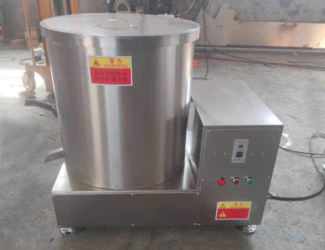 脱油机以离心力工作原理,以电动机带动脱油机内胆在高速旋转的作用下,把食品油炸过程中残留的油,通过离心作用脱净。